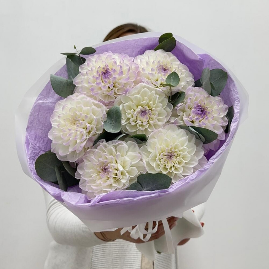 Warning: unlink(/var/www/buketprosto__usr/data/www/storage/cache/cache.catalog.language.1760276253): No such file or directory in /var/www/buketprosto__usr/data/www/buketprosto.ru/system/library/cache/file.php on line 68Купить Букет из 7 бело-лиловых георгин с эвкалиптом в Костроме с доставкой за 3702 ₽ | БукетПросто