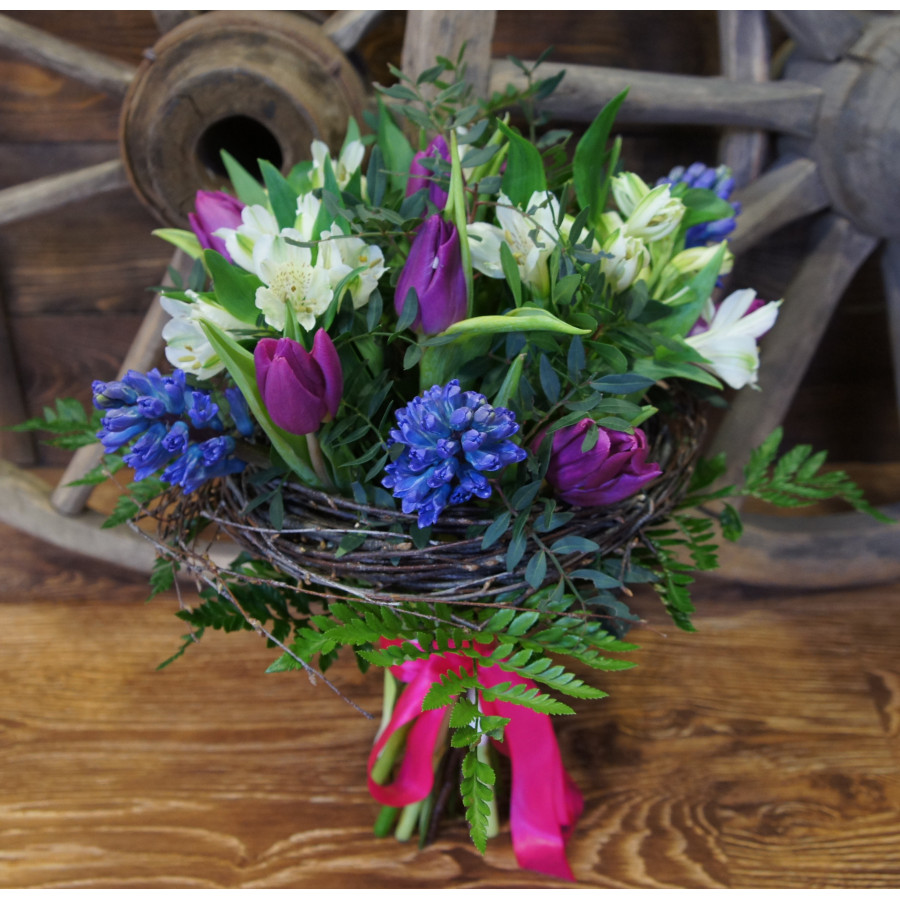 Флористы составили неподражаемую композицию из трех гиацинтов, трех альстромерий, пяти свежайших тюльпанов, оформили все это великолепие в каркас и украсили лентой и писташем. В итоге получился оригинальный и ароматный букет, который станет превосходным презентом для любимой женщины, коллеги, сотрудницы или подруги. Отличается элегантностью и стойкостью, благодаря чему гарантированно придется по вкусу самым взыскательным натурам.